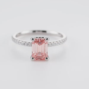 Emerald 1.50ct Fancy Intense Pink VS1 with Pave | Platinum | IGI Certified