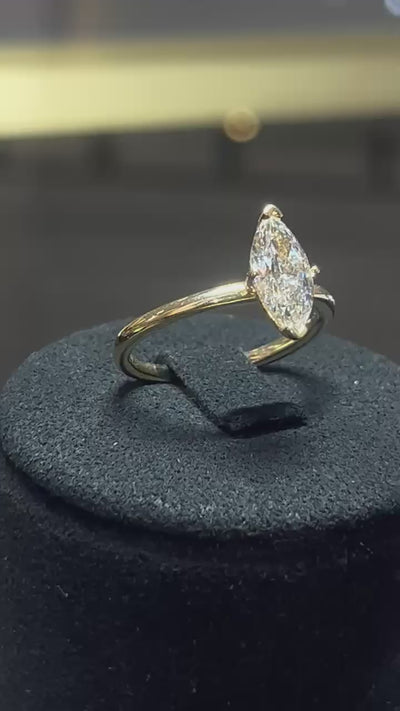 Marquise 1.07ct F VS2 Diamond Engagement Ring | 18K Yellow Gold | IGI Certified